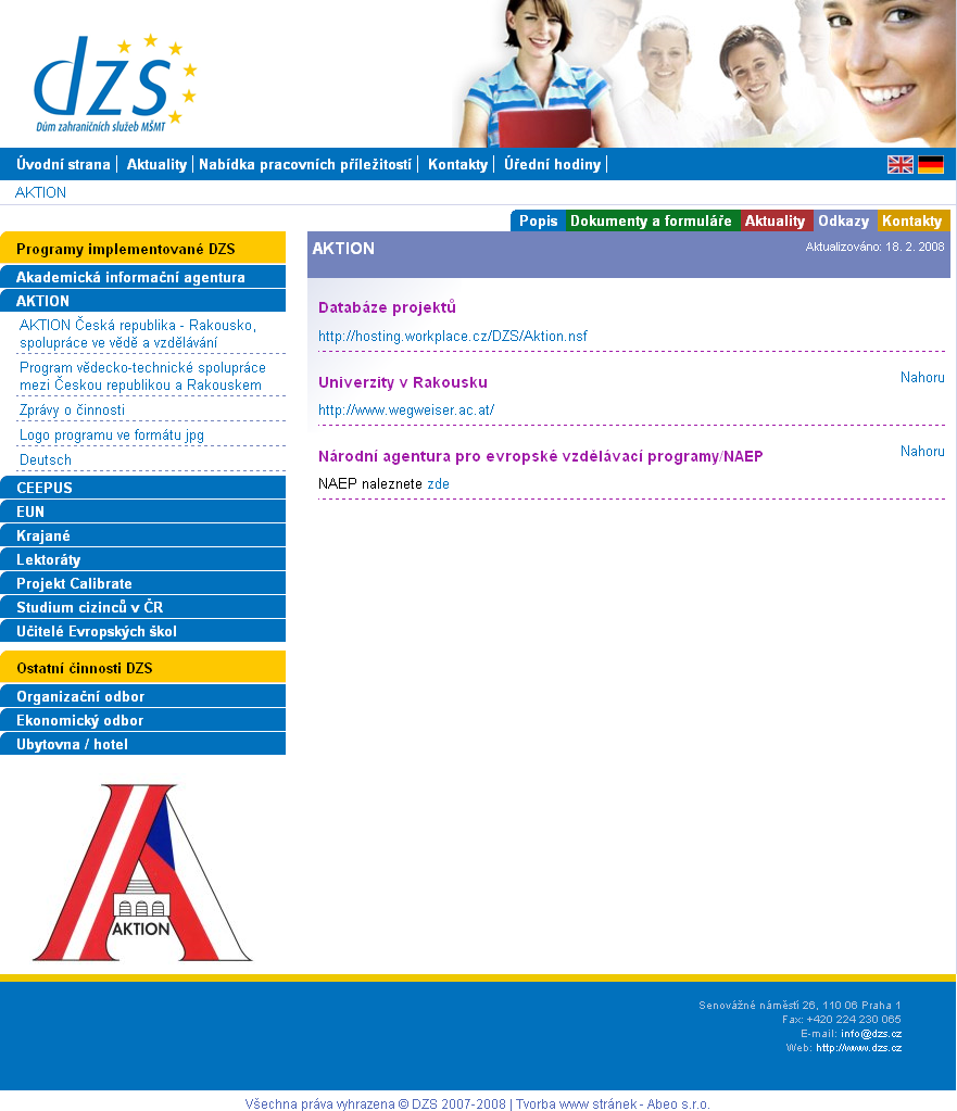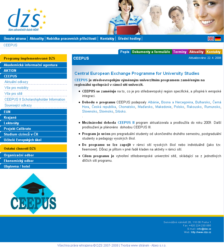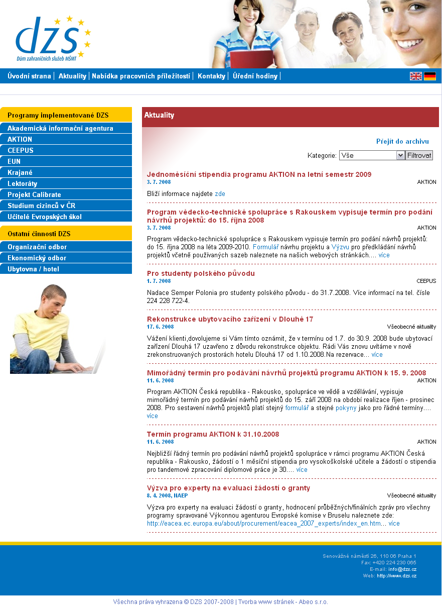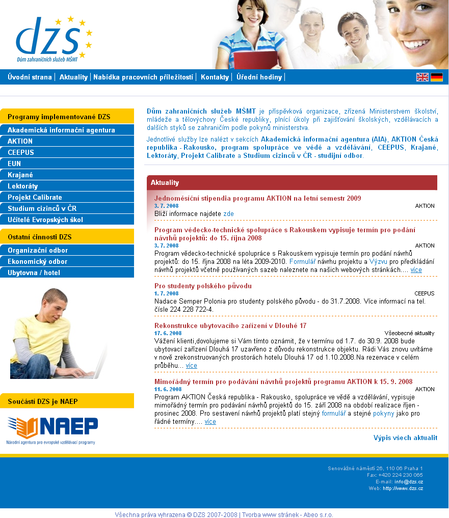Tvorba webu pro Dům zahraničních služeb MŠMT (DZS) započala po