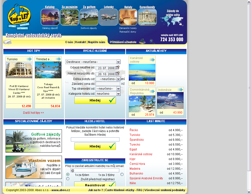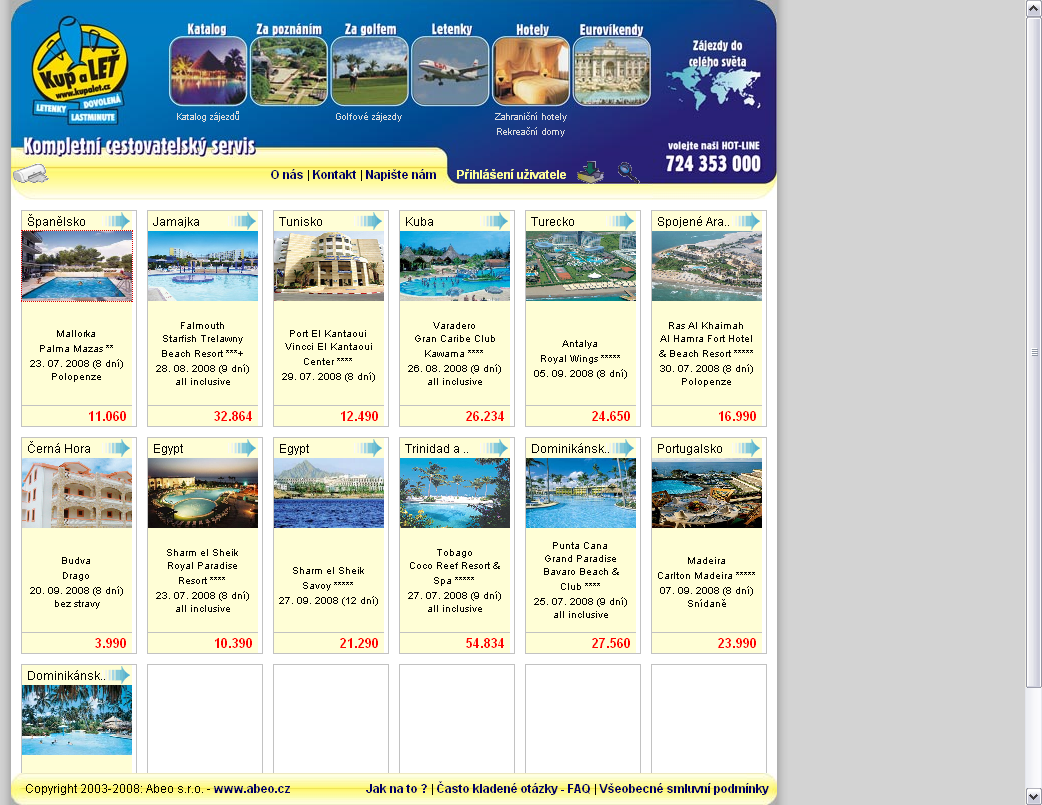 Cestovní agentura CA Last Minute prodává zájezdy téměř výhradně přes webový portálwww.kupalet.cz .
