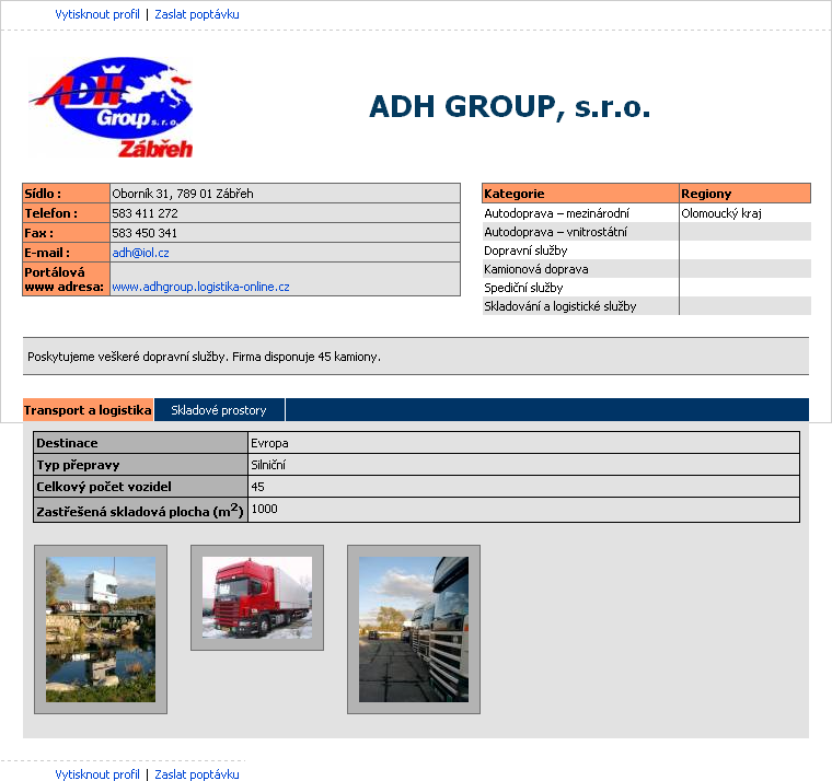 Webový portál Logistika-Online.cz slouží poskytovatelům a uživatelům logistických služeb a produktů k zadávání a získávání aktuálních informací v oblastech, jako jsou: