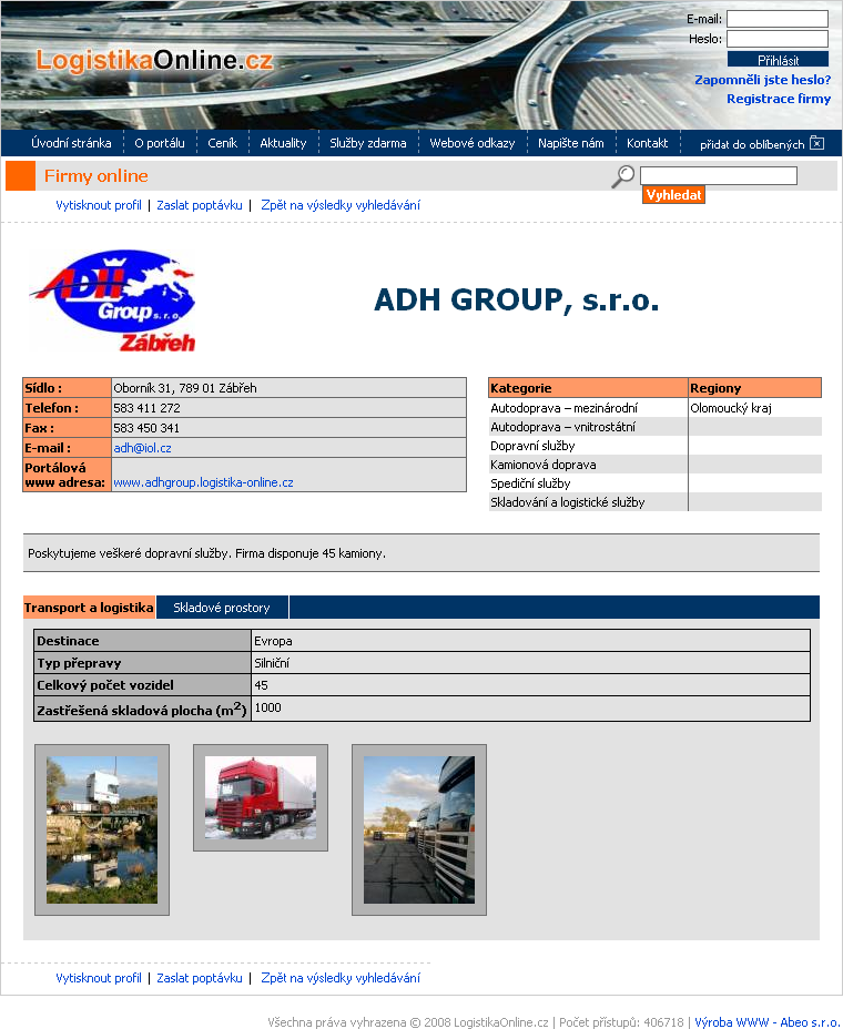 Webová prezentace Logistika-Online.cz umožňuje podávat neomezený počet inzerátů do tzv. "Burzy Online" pro firemní i nefiremní registrované členy.